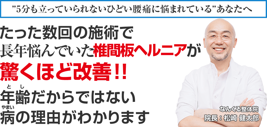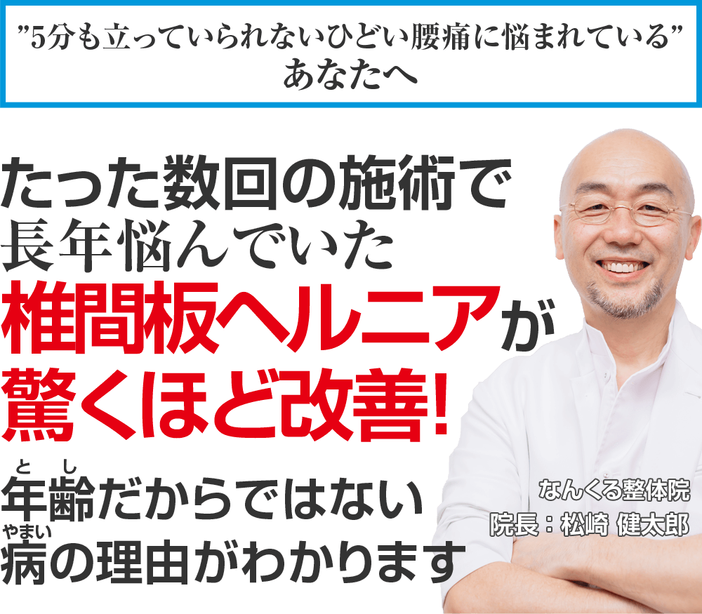 - 3箇所以上の整体院に通ってみたが、椎間板ヘルニアが改善する気配がない。