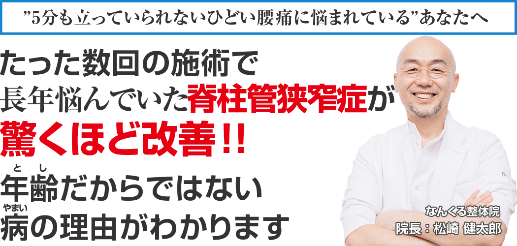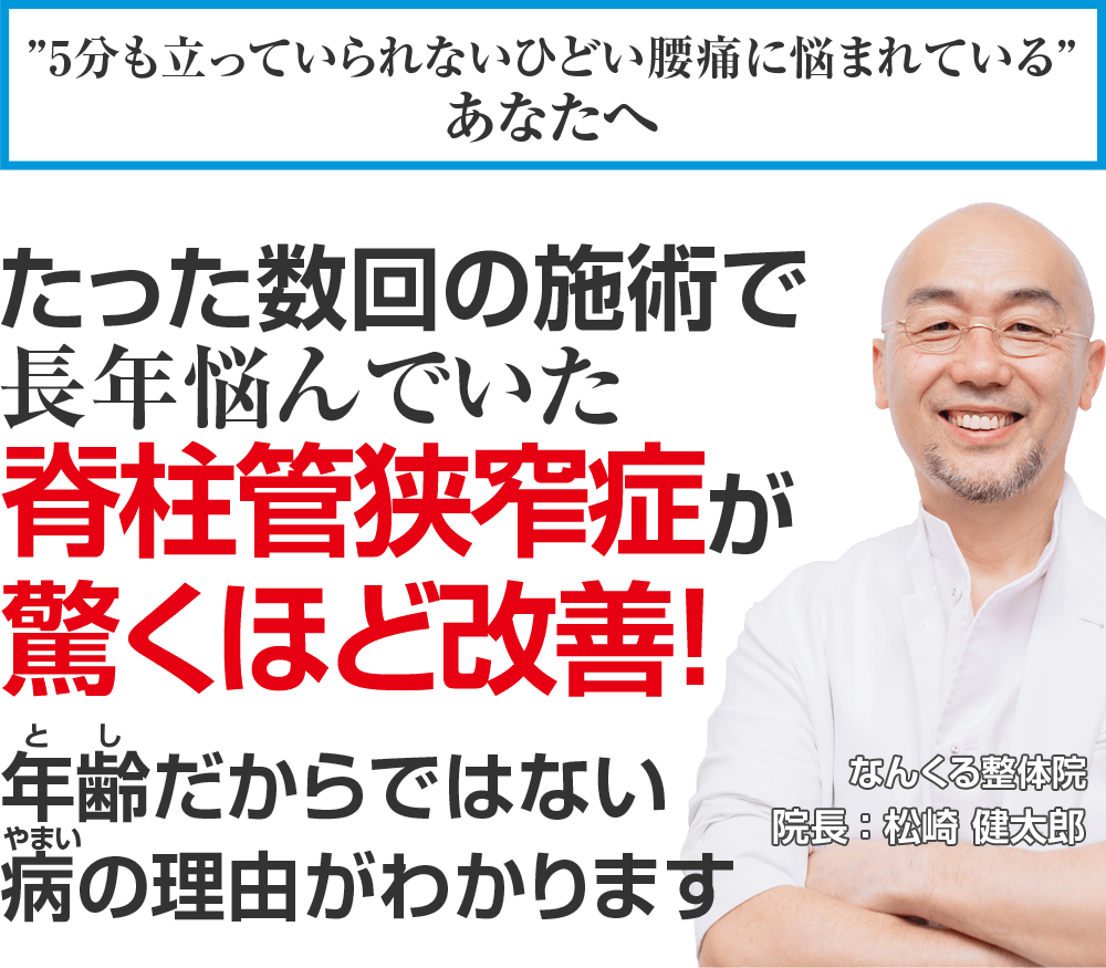 - 3箇所以上の整体院に通ってみたが、脊柱管狭窄症が改善する気配がない。